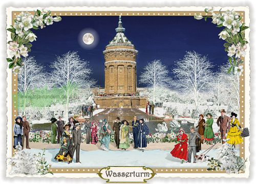 STÄDTE-POSTKARTE, WEIHNACHTEN – WASSERTURM, MANNHEIM (QUER) – Edition Tausendschön PK876