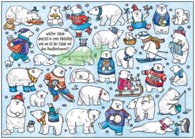 Welcher Eisbär arbeitet in einer Bibliothek und wo ist der Eisbär mit dem Musikinstrument? – TAURUS Kunstkarten